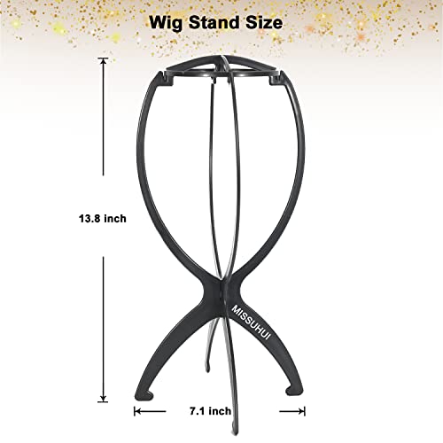 Wig Stand Wig Holder, Short Wig Stand Portable Wig Head Stand, Collapsible Wig Holder for Multiple Wigs, Wig Display Stand Tool Travel Wig Stand (2Pcs Black)